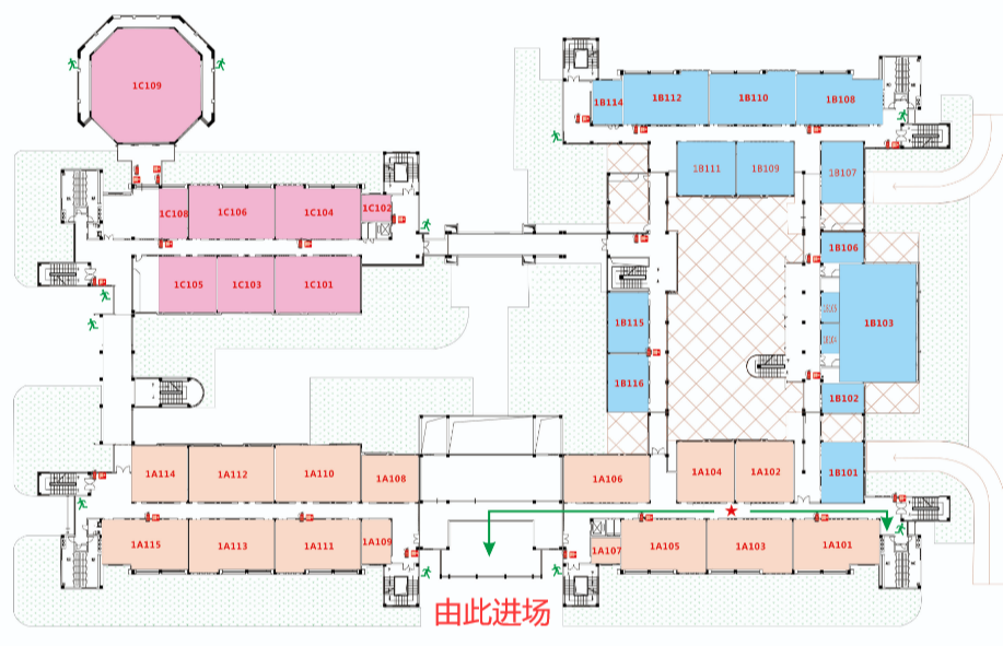 注意:橙色區域為A區、藍色區域為B區、粉色區域為C區,先進區再上樓!
