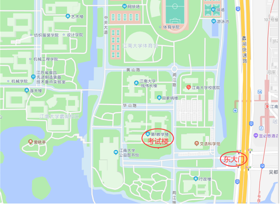 1.考生務必從蠡湖大道1800號東大門進出考點(東大門距離考試樓步行約5分鐘)。東大門進入校園后請按照指引,沿指定線路到達考試區域,入場(第一教學樓)截止時間為8:40。