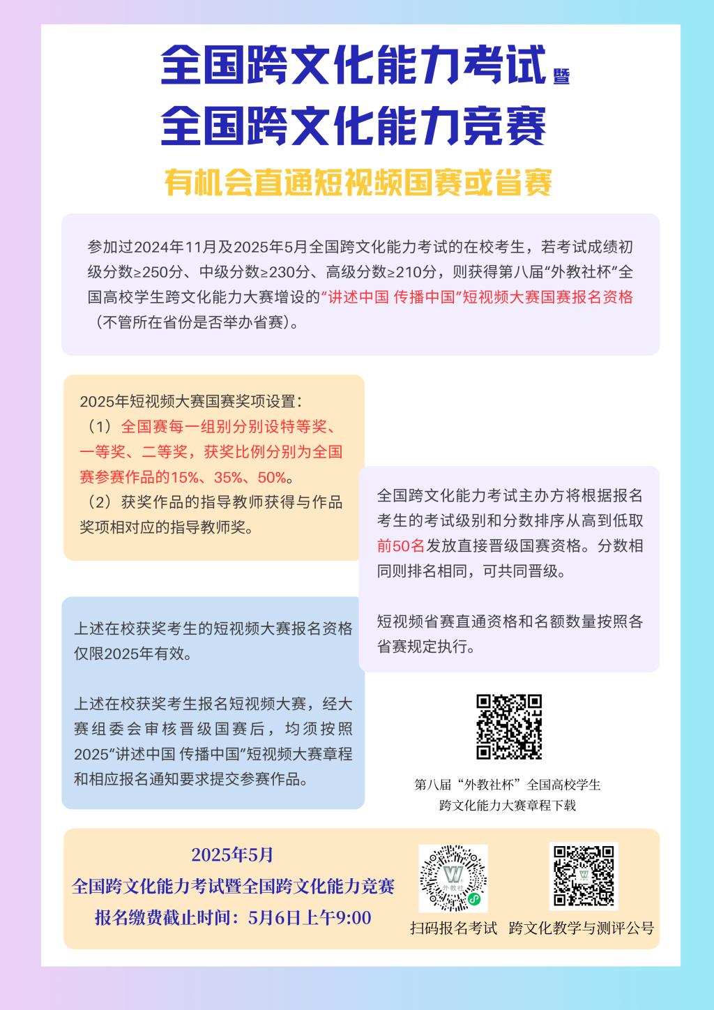 2025年上半年全國跨文化能力考試將于5月17日(周六)上午舉行。