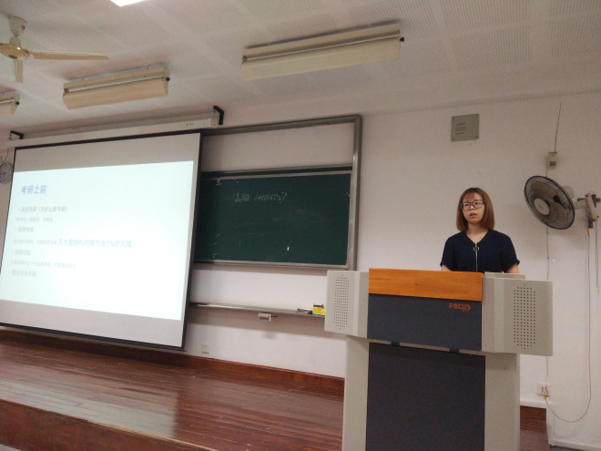 分享會首先由楊艷老師致辭,楊老師作為畢業年級輔導員,分析了2018屆畢業生的就業形勢,并鼓勵低年級學生合理自我定位、樹立奮斗目標,提早準備。