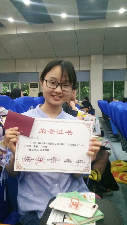 下午的比賽中,我院日語系三位參賽選手以清晰的日語發音,流利的日語表達,臨危不亂的現場發揮,打動了觀眾和評委,也展示了扎實的日語知識和全面的綜合能力。最終,戚維欣同學榮獲本科組特等獎,黃倪及王晗同學榮獲二等獎。我院已連續多年在“太湖杯”日語演講比賽中取得了可喜的成績。