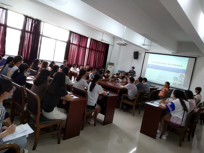 在9月2日下午舉行的“2018級外國語碩士新生導師見面會”,13名碩士生導師與35名碩士新同學面對面進行了親切交流。導師們先分別向同學們介紹了自己的研究方向和學術興趣,并對學生們表示熱烈歡迎,同學們也激情澎湃地向眾位導師做了自我介紹,在各位導師心中留下了深刻的印象。見面會后,部分導師與學生還進行了近距離的深入交流與溝通。