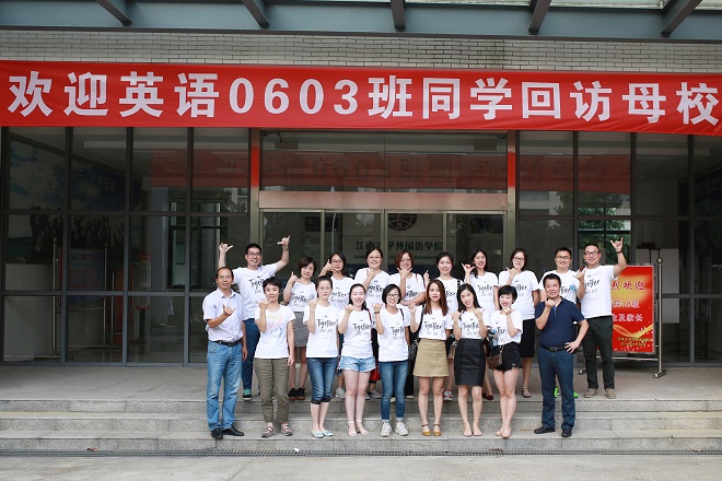 校慶60周年來臨之際,9月8日,外國語學院迎來了英語0603班22名校友返校聚會,班主任汪雙喜老師應邀請出席。