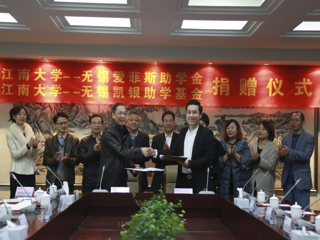 據悉,無錫愛菲斯公司和無錫凱銀公司分別在外國語學院設立助學金和助學基金,用于支持外國語學院學子成長成才,助力外國語學院的建設與發展。本次捐贈儀式的成功舉辦將有助于深化校企雙方合作,實現互利共贏。在js3333線路檢測中心60周年校慶之際,兩個公司的捐贈是獻禮,更是希冀,在校方和社會各界的共同關愛下,外國語學院必將砥礪前行,再創輝煌。
