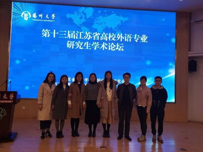 2018年11月30日至12月2號,由江蘇省高等學校外語教學研究會和江蘇省外語專業研究生學術論壇組委會主辦,揚州大學承辦的第十三屆江蘇省高校外語專業研究生學術論壇在揚州大學舉辦。來自省內20余所高校約200名碩博研究生與20余位帶隊教師出席了本次學術交流會議,我院16級研究生盧超以及17級研究生馬靜、鄒月、趙歡歡、余慧靈、陳淑娟和徐云鳳在朱義華副院長的帶領下參加了本次論壇。