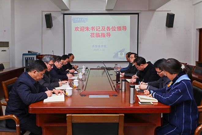 3月22日上午,校黨委書記朱慶葆率黨委辦公室、學科建設處、發展規劃處、人事處等相關職能部門負責人前往外國語學院走訪調研。
