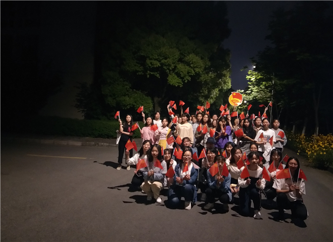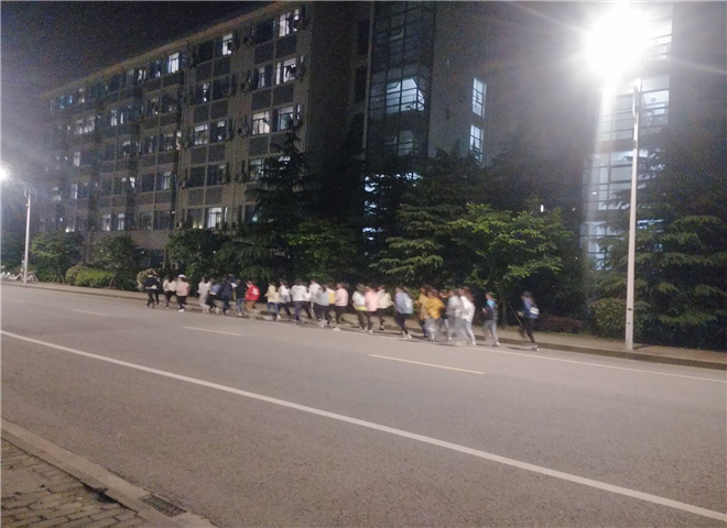 青春與時代相輝映,青年與祖國共奮進。為紀念五四運動100周年,繼承和弘揚五四精神,展現當代青年青春風貌,進一步增強青年學子的身心健康,外國語學院“增強心動力訓練營”與2018級八個團支部共同開展“五四青年節熒光夜跑活動”。青年學子相約在五月每周一三日的夜晚,手舉國旗和共青團團旗,在江大春暖花開的校園完成4.1公里的奔跑。同學們高唱《我和我的祖國》等愛國歌曲,在校園中形成一片紅色海洋。