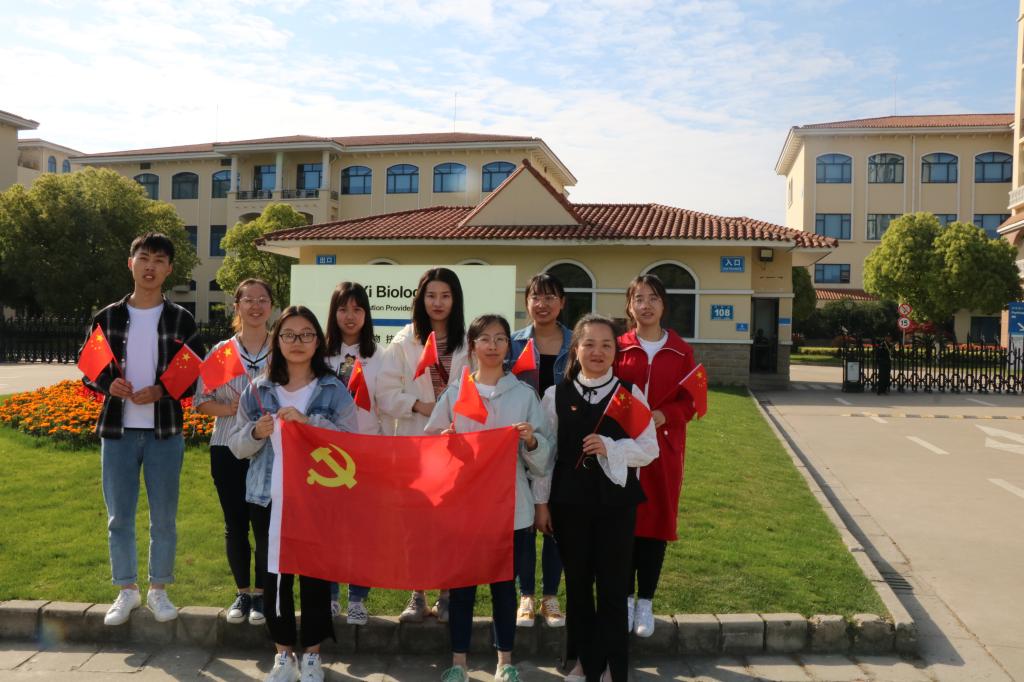 參觀結(jié)束之后,外院師生集體站在藥明康德集團(tuán)大門前合影留念,隨后青馬訓(xùn)練營的學(xué)員們拿著飄揚(yáng)的小國旗,佩戴著團(tuán)徽,合唱了一首《我和我的祖國》,為五四青年節(jié),為祖國獻(xiàn)禮。