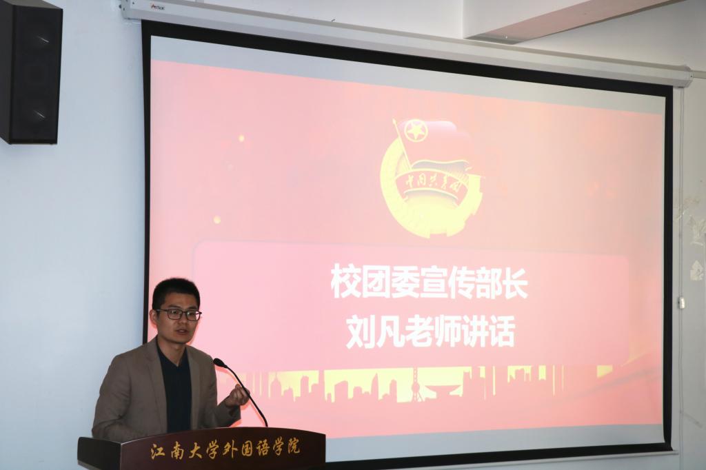 校團委宣傳部部長劉凡老師在特稱團支部交接儀式上講話