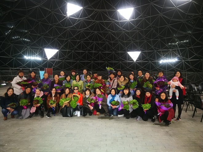 經過一小時車程到達農莊。老師們首先聆聽了農莊主人許利女士關于新型生態農業的介紹 ,了解了生態農莊的創辦過程以及產品特色,然后大家進入育苗棚等不同產品生長階段的大棚,觀察無土有機立體栽培蔬菜的生長環境和長勢,感受植物的蓬勃生機。大家還親自動手采摘生菜,包扎一束充滿原生氣息的鮮花—生菜花,具有生才或生財的美好喻意,來慶賀自己的節目。活動中大家相互留影,記錄了一張張笑臉與一棵棵生命力爆棚的植株。