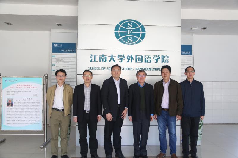 領導與嘉賓合影留念(右三為黃友義先生,左三為吳正國副校長,右二為倪松濤,左二為黃城芳,右一為龔曉斌,左一為朱義華)