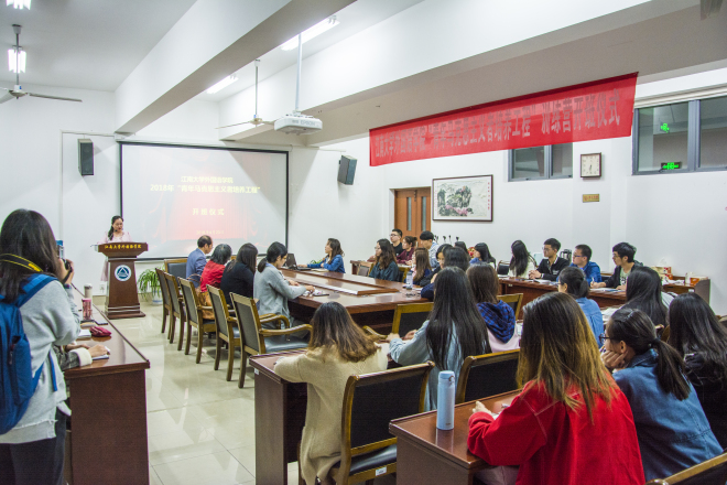 2018年4月23日晚六點半,js3333線路檢測中心青年馬克思主義者培養工程訓練營暨外院團學菁英班(以下簡稱院“青馬工程”)開班儀式于外院樓A349室舉行。校團委組織部部長夏京璟,學院黨委副書記副院長劉伯賢,關工委委員鮑國慶,分團委副書記張圓,輔導員黃穎,學生會主席團成員出席開班儀式,學院分團委書記楊艷主持了本次開班儀式。
