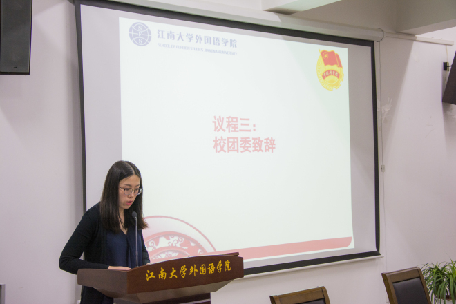 接著進入了開班儀式第一項議程,奏唱中國共產主義青年團團歌。隨后楊老師介紹了今天到場的各位領導與嘉賓,并邀請校團委組織部部長夏京璟老師致辭。夏老師提出要保持團組織的先進性,用習近平新時代中國特色社會主義思想武裝自身,武裝全團,闡明了青馬工程培訓的目的與意義,指明了青馬工程的培訓目標,為團學組織建設提出了建議和努力方向。并囑托在座青馬訓練營營員能夠在本次青馬訓練營中“學得透、學得進、學的廣”。