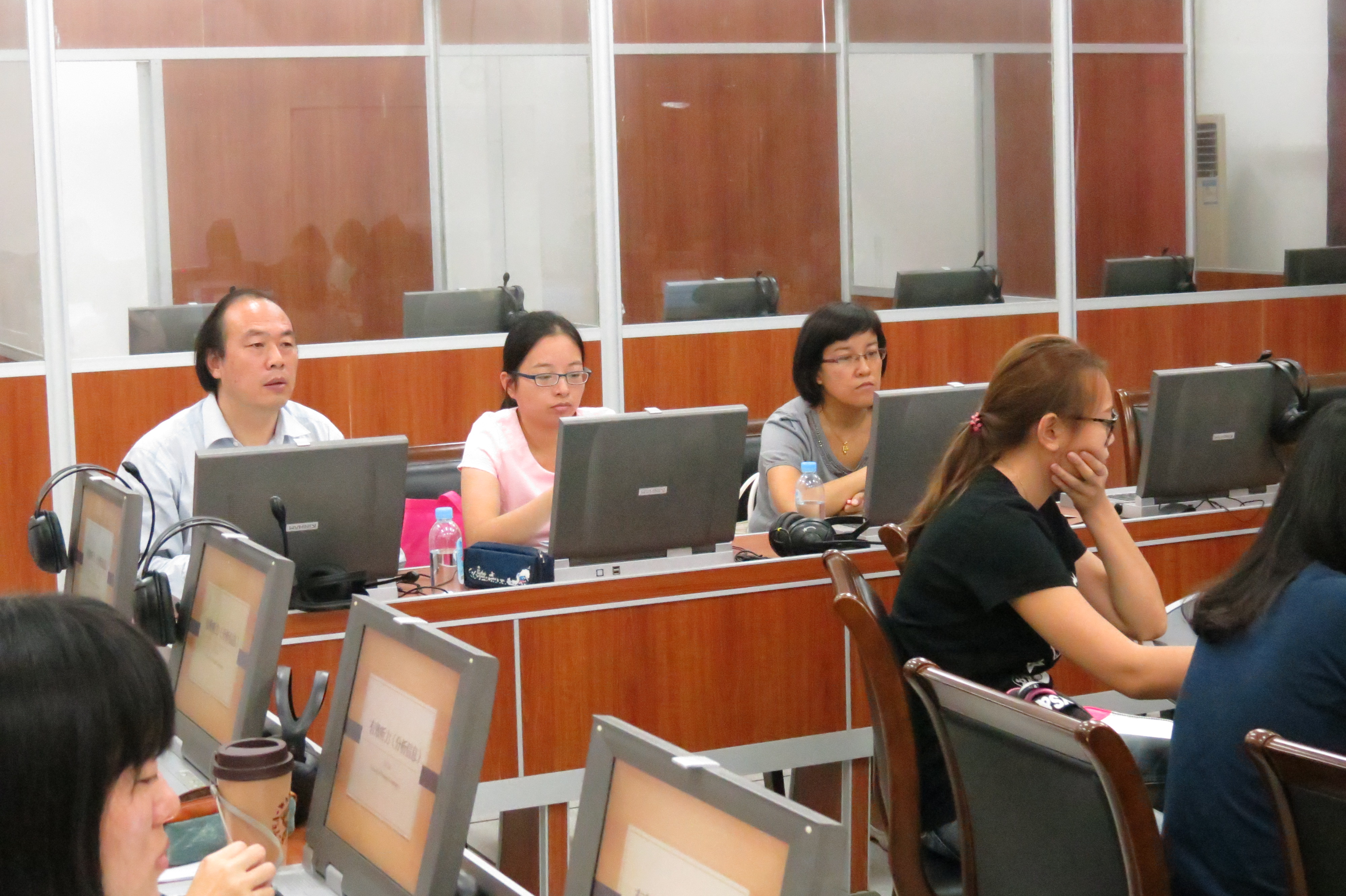 2014925日常州大學外國語學院施云兵書記、薛榮院長帶領教學、學工、院辦、實驗中心負責人一行15人來院交流指導,雙方就外語課程教學、專業建設、人才引進、師資隊伍建設、科研工作及獎勵機制、實驗室建設、國際交流及學生工作等相關問題進行了相互交流。我院周建中書記、龔曉斌院長參加了交流活動并向來賓介紹了我校大學英語教學改革十年來取得的成績,及新一輪改革中的課程模塊和修讀模式。交流期間客人們隨堂聽取了《大學英語》、《高級口譯》、《中級口譯》和《商務英語》等課程的課堂教學,參觀了我院的數字化外語教學中心。
