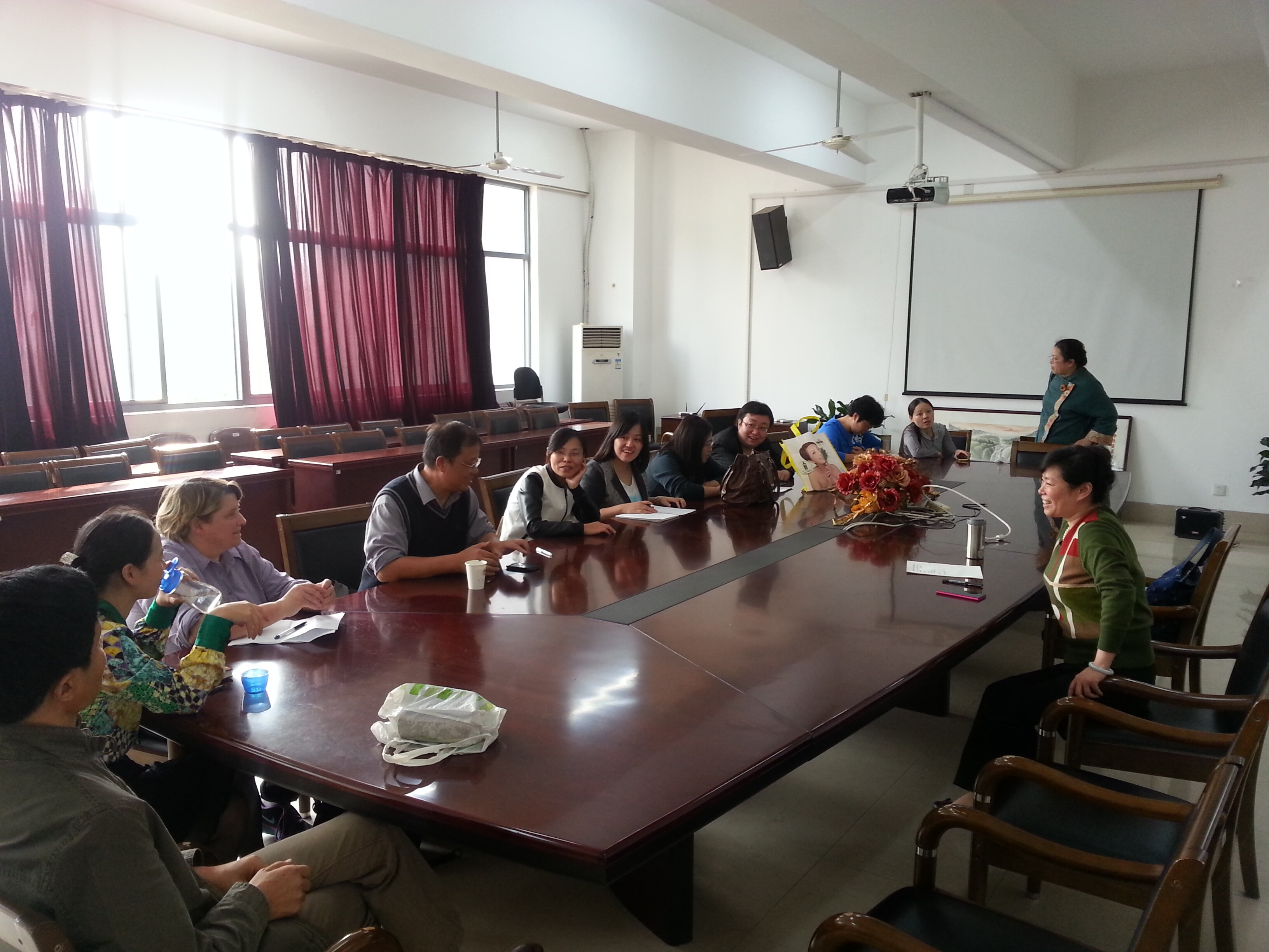 翻譯教研創(chuàng)新團(tuán)隊(duì)在學(xué)院工會(huì)活動(dòng)室舉行了首次全英文的交流,交流活動(dòng)由團(tuán)隊(duì)負(fù)責(zé)人王金安教授主持。首先,王教授代表翻譯學(xué)科團(tuán)隊(duì)對(duì)外教Kelli的加入表示了熱烈的歡迎,Kelli對(duì)個(gè)人的求學(xué)背景、學(xué)術(shù)興趣與教學(xué)經(jīng)歷進(jìn)行了介紹,并和大家分享了在中國(guó)的所見所聞。隨后,團(tuán)隊(duì)成員就中西文化的差異、團(tuán)隊(duì)活動(dòng)的規(guī)劃與主題、團(tuán)隊(duì)研討的形式與地點(diǎn)、口筆譯教學(xué)中遇到的問題、項(xiàng)目與成果培育等方面發(fā)表了各自的見解。此外,團(tuán)隊(duì)成員還進(jìn)一步表示要多加強(qiáng)聯(lián)絡(luò)與溝通,強(qiáng)調(diào)要利用Wechat與QQ群等來保持信息互通有無的重要性。整個(gè)活動(dòng)最后在輕松與愉快的氛圍中畫上了句號(hào)。
