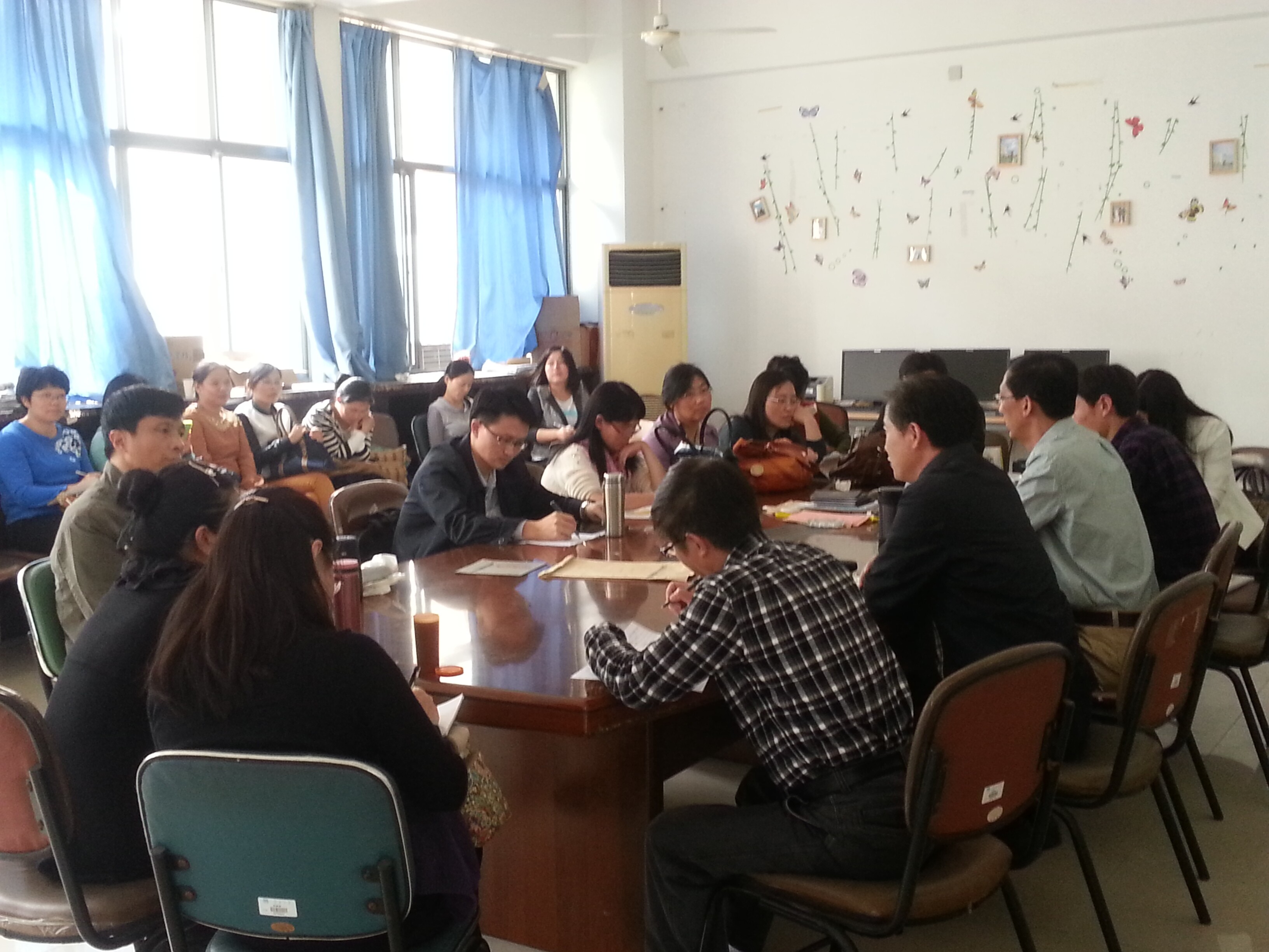 語言教學(xué)教研創(chuàng)新團(tuán)隊(duì)的全體成員在學(xué)院大會(huì)議室舉行研討活動(dòng)。該活動(dòng)由團(tuán)隊(duì)負(fù)責(zé)人嚴(yán)敏芬教授主持。嚴(yán)教授首先介紹了團(tuán)隊(duì)的目的和具體任務(wù),并結(jié)合我團(tuán)隊(duì)成員的實(shí)際情況以及所獲得的成果指出了今后工作的大致目標(biāo)。接著團(tuán)隊(duì)的每個(gè)成員簡(jiǎn)要地介紹了一下目前個(gè)人在科研方面的研究重點(diǎn)以及個(gè)人對(duì)教學(xué)中所遇到的問題的反思。對(duì)此,嚴(yán)教授希望全體成員能以此為契機(jī),積極行動(dòng)起來,以教促研,以研助教,努力完成學(xué)院與系部分配的目標(biāo)任務(wù)。