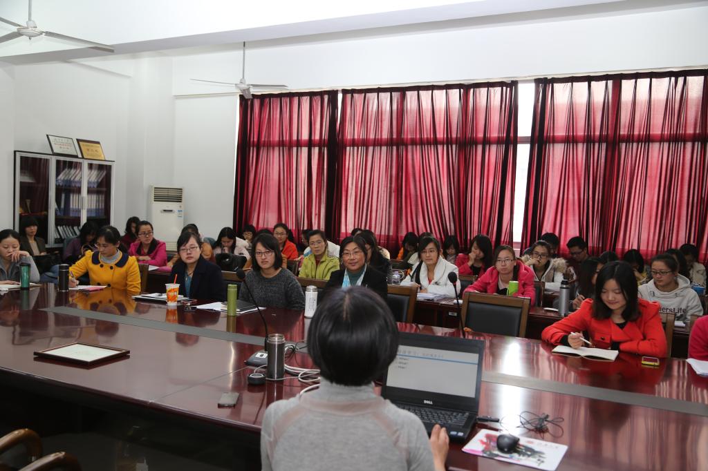 顧教授以《語言學習中的輸入問題:經典與熱議》為題,從母語習得談起,用周圍的實例拉近了與學生的距離。她講解了目前學術研究中有關語言學習的經典與熱點話題,尤其是二語習得中的輸入問題。隨后,顧教授的研究生裴虹和殷娜以各自的畢業課題做個案分析,課題名稱分別為《輸入模態和語言水平對二語目標結構注意和習得的影響》和《輸入模態對認知負荷和二語理解的影響——水平組對比研究》。顧教授指出,這兩個研究課題同屬語言學習中的輸入研究,不過其側重點各有不同。兩課題看似是不同變量的拼拼合合,但其內在邏輯不容小覷。