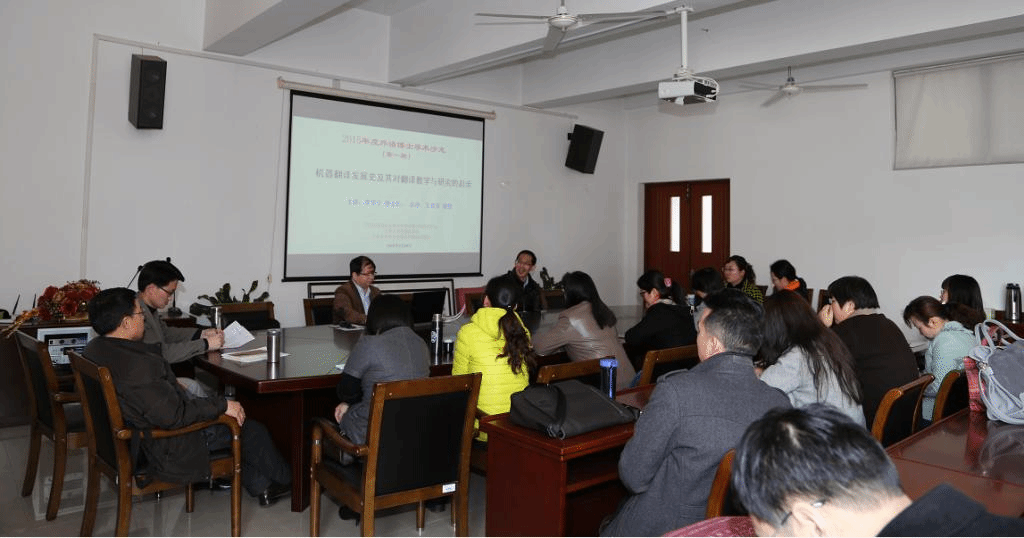 隨后,李學(xué)寧博士做了“機(jī)器翻譯發(fā)展史及其對(duì)翻譯教學(xué)與研究的啟示”的主題講座。李博士從索緒爾《普通語(yǔ)言學(xué)教程》的歷史意義與數(shù)學(xué)之于語(yǔ)言研究的重要性談起,借鑒語(yǔ)言學(xué)、數(shù)學(xué)、計(jì)算機(jī)科學(xué)甚至哲學(xué)的思想與成果來系統(tǒng)尋蹤并客觀分析了機(jī)器翻譯的發(fā)展階段、主要人物、重要概念、本質(zhì)屬性、翻譯標(biāo)準(zhǔn)、課程開設(shè)、市場(chǎng)開發(fā)以及對(duì)翻譯教學(xué)與研究的啟示。李博士的講解深入淺出、旁征博引、講解風(fēng)趣、舉例生動(dòng),受到了參與者的一致好評(píng)。在老師們和李博士進(jìn)行了簡(jiǎn)短的互動(dòng)后,王金安教授以其開闊的學(xué)術(shù)視野、深厚的理論功底與精辟的語(yǔ)言文字對(duì)李博士的講解與該場(chǎng)學(xué)術(shù)沙龍進(jìn)行了精彩點(diǎn)評(píng)。沙龍最后在老師們的自由交流中落幕。