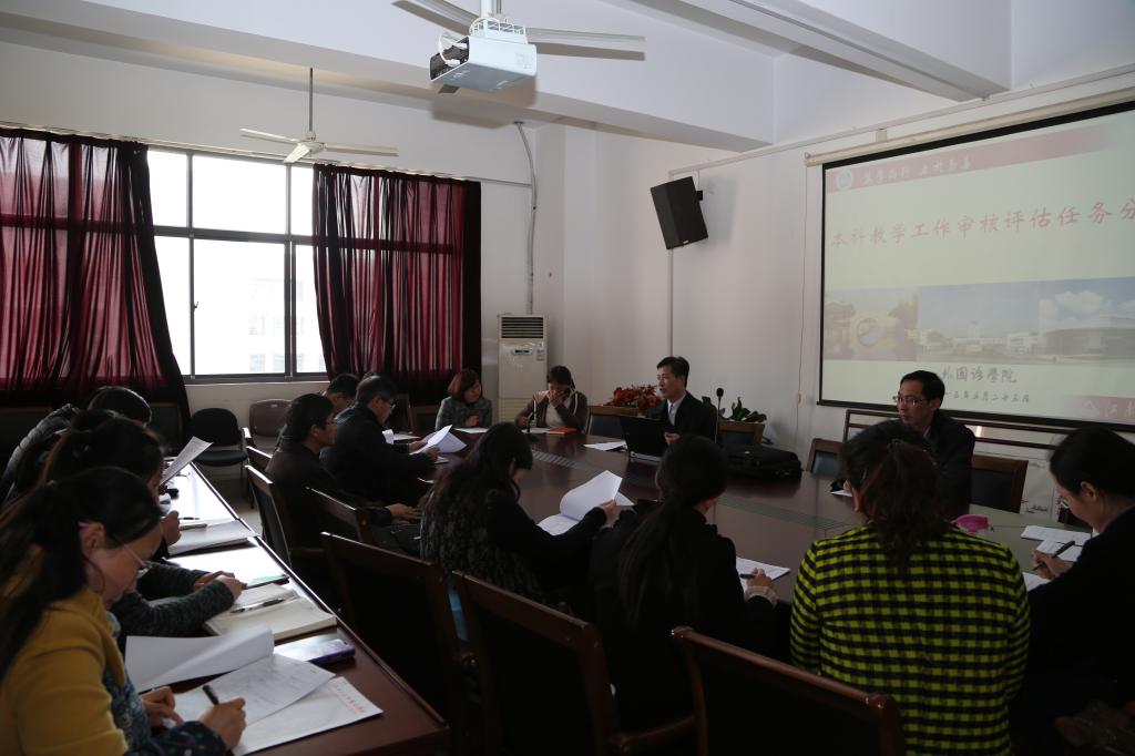3月25日下午,外國語學院在外語樓A349會議室召開了本科教學工作審核評估任務分解專題會,龔曉斌院長、教學委員會成員、系部正副主任、人事秘書、科研秘書、分團委書記、實驗中心主任、教務秘書等相關(guān)人員參加了此次會議。會議由李健雪副院長主持。