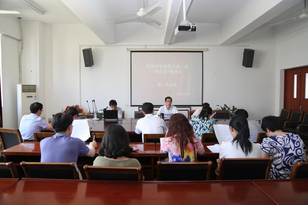 612日下午,外國語學院第五屆二次“兩代會”執(zhí)委會第二次會議在文科樓A349會議室召開。學院教代會執(zhí)委會委員參加了會議,會議由執(zhí)委會秘書管紀龍同志主持。