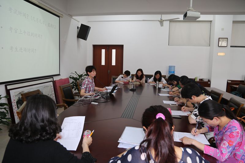 本次考試報名首次采用教育部考試中心通用考試報名平臺系統,為了確保考試順利進行,社會服務部工作人員從2月份起就忙于考試的前期工作,包括考試宣傳、考生報名咨詢、考試報名平臺系統的調試和數據上傳、考場安排、考試材料準備等工作??荚嚽捌诜謩e召開BEC考前考務工作會議、考官培訓會議。這兩次考試,共計考官16人,考務6人。整場考試分為上午筆試、下午口試,從早晨8點持續到下午5點30分,每位考官和考務人員以認真、細致的工作態度完成每部分考試工作??忌鷤兇舜慰荚嚨膮⑴c度也非常高,考場秩序井然。