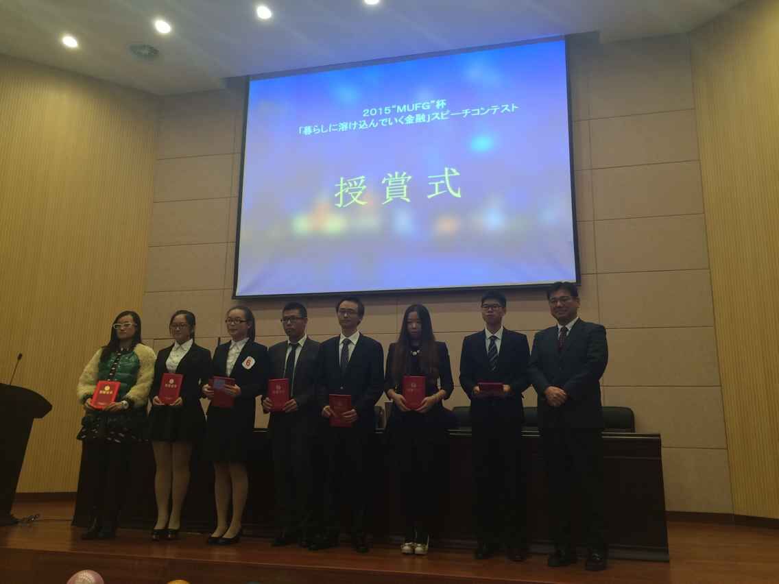 選手們從不同角度闡述了自己對(duì)于“金融走進(jìn)生活”的理解,通過(guò)多媒體、現(xiàn)場(chǎng)互動(dòng)等形式,生動(dòng)地表達(dá)了自身的觀點(diǎn)。既展現(xiàn)了個(gè)人風(fēng)采,也體現(xiàn)了當(dāng)代大學(xué)生對(duì)社會(huì)、經(jīng)濟(jì)、人文的關(guān)注與思考。他們激昂的語(yǔ)調(diào)、慷慨的陳詞贏得了現(xiàn)場(chǎng)評(píng)委的一致好評(píng)。比如第八組的參賽隊(duì)員將自己的演講內(nèi)容與多媒體課件結(jié)合,闡述了對(duì)支付寶、余額寶等新興金融事物的理解。流利的日語(yǔ)、縝密的思維和與時(shí)事的結(jié)合深深地吸引了大家的注意。經(jīng)過(guò)激烈的角逐,日語(yǔ)1303班的鄭盼盼、孫宇等同學(xué)獲得了特等獎(jiǎng),日語(yǔ)1201的陳天泓、崔夢(mèng)婕等同學(xué)獲得了一等獎(jiǎng)。