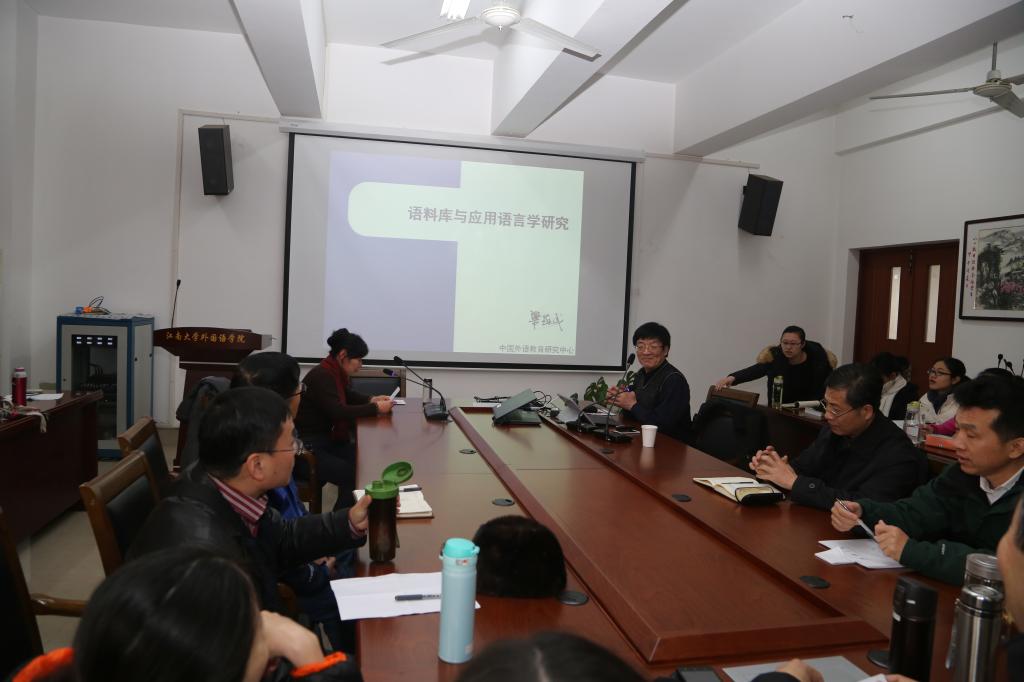 最后半個小時是互動環節,梁教授與在場師生就語料庫在翻譯和文學研究中的應用展開了熱烈討論,就師生們所提出的問題闡釋了自己獨到的見解,并熱情歡迎江大學子將來報考北外博士,還慷慨地與老師們分享了他自主開發的語料庫軟件。