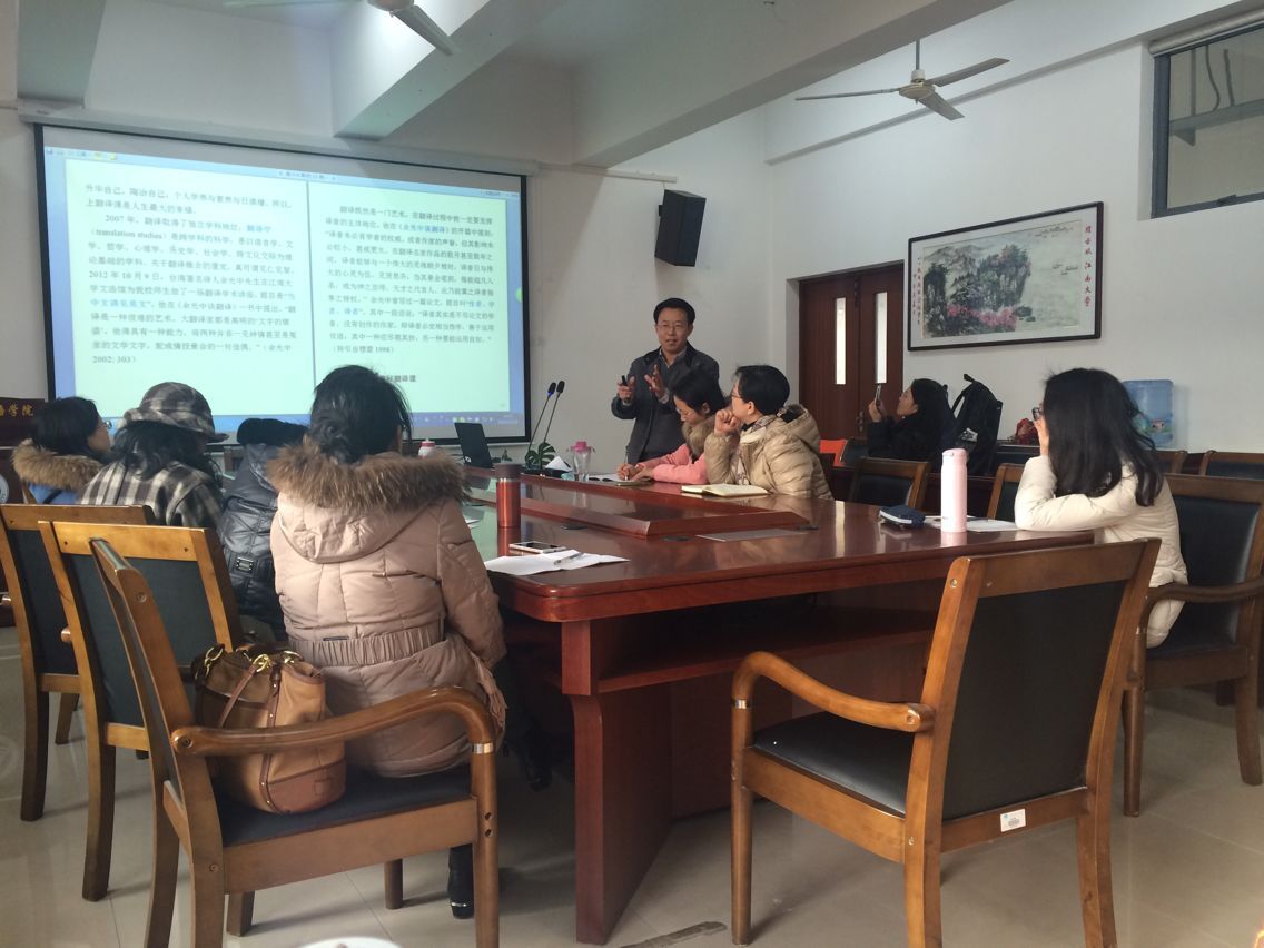 為了進(jìn)一步推進(jìn)和深化js3333線路檢測中心大學(xué)英語教學(xué)改革,外國語學(xué)院根據(jù)學(xué)校對于人才培養(yǎng)的新要求,秉持“各取所需,個性發(fā)展,強(qiáng)化能力,突出應(yīng)用”的改革理念,2014年起,實施了全新的大學(xué)英語課程模塊設(shè)置和修讀模式,以滿足社會和學(xué)生發(fā)展的多元需求,提高學(xué)生的語言應(yīng)用能力,幫助他們提升國際競爭力。在一年多的教改實踐中,針對翻譯模塊師資緊缺、教師在崗專業(yè)培訓(xùn)系統(tǒng)化、持續(xù)化、常規(guī)化與精準(zhǔn)化不足等問題,以提高翻譯模塊教師教學(xué)與科研水平,最終提高教學(xué)質(zhì)量為宗旨,大學(xué)英語拓展部精心組織了“卓越課堂”翻譯模塊互動式系列講座。系列講座主要邀請翻譯方向的資深教授與翻譯模塊教師進(jìn)行翻譯教學(xué)研究方面的分享、交流與互動。首場講座于12月28日在外國語學(xué)院A349舉行,由外國語學(xué)院翻譯研究所所長、學(xué)院翻譯團(tuán)隊負(fù)責(zé)人、資深翻譯教授王金安教授為拓展部翻譯模塊教師做了題為《翻譯教學(xué)漫談》的講座。講座不僅吸引了拓展部翻譯模塊的任課教師,而且還吸引了其他模塊教師前來聆聽。