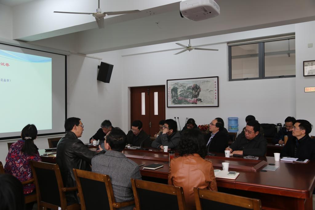 座談會上,龔曉斌院長代表學院對秦院長一行的到來表示熱烈歡迎,并表示十分樂意將我院經歷本科審核性評估的體會與感想進行分享。首先,他介紹了我校評估期間的總體情況;隨后,他以審核性評估歷經的時間為線索,按照評估前、評估中以及評估反饋三大塊,分別詳細闡述了我院的經驗與體會。秦院長對學院的熱情接待表示感謝,并表示此行目的是來深入學習我院迎接評估的寶貴經驗,以便在距離正式審核評估的三周內做進一步的調整與完善。最后,在秦院長的提議下,我院與揚州大學外國語學院各對口部門的老師就審核性評估的事宜分別進行了深入的交流和探討。