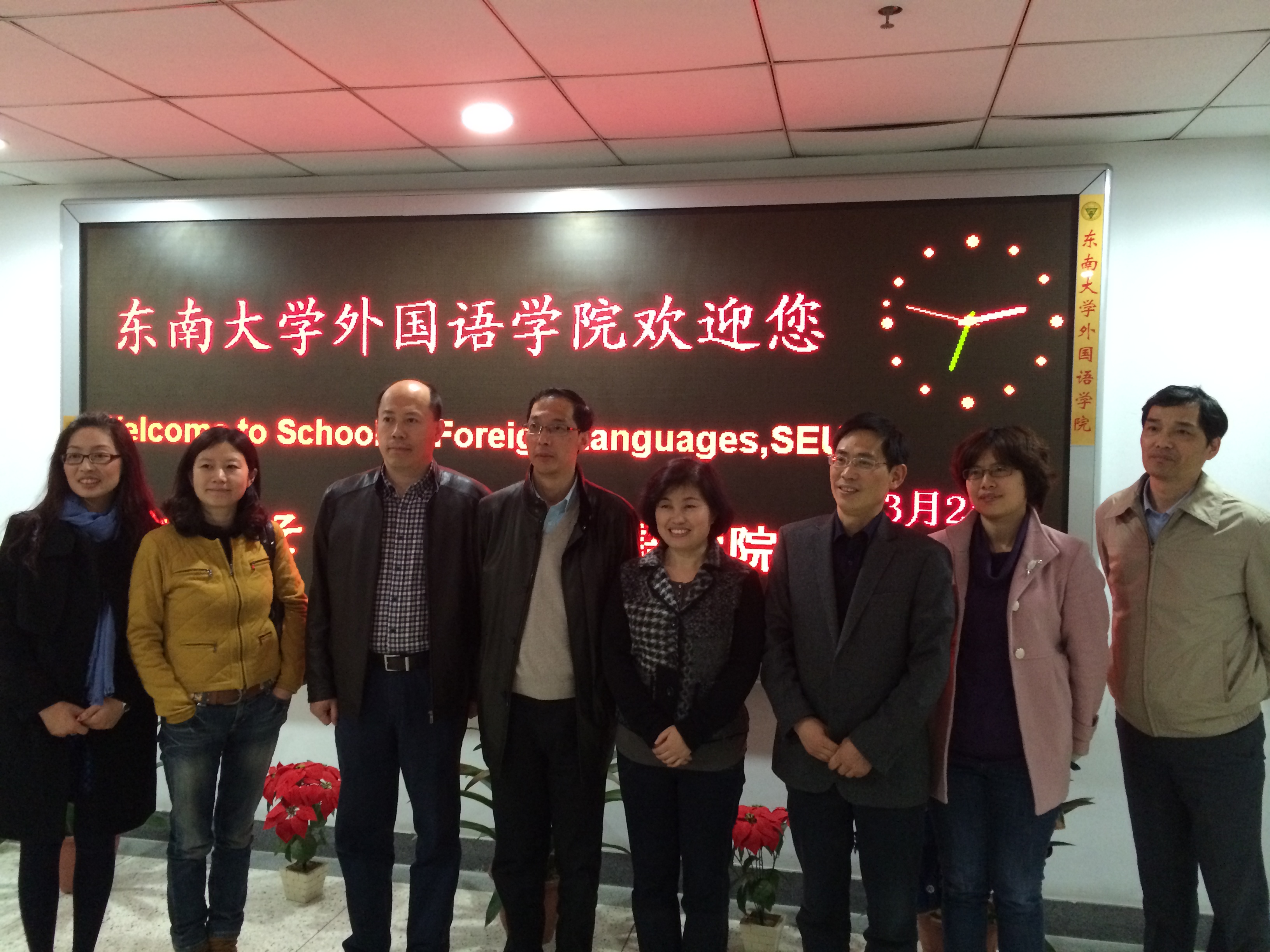 與東南大學外國語學院馬強書記(左三)、陳美華院長(左五)合影