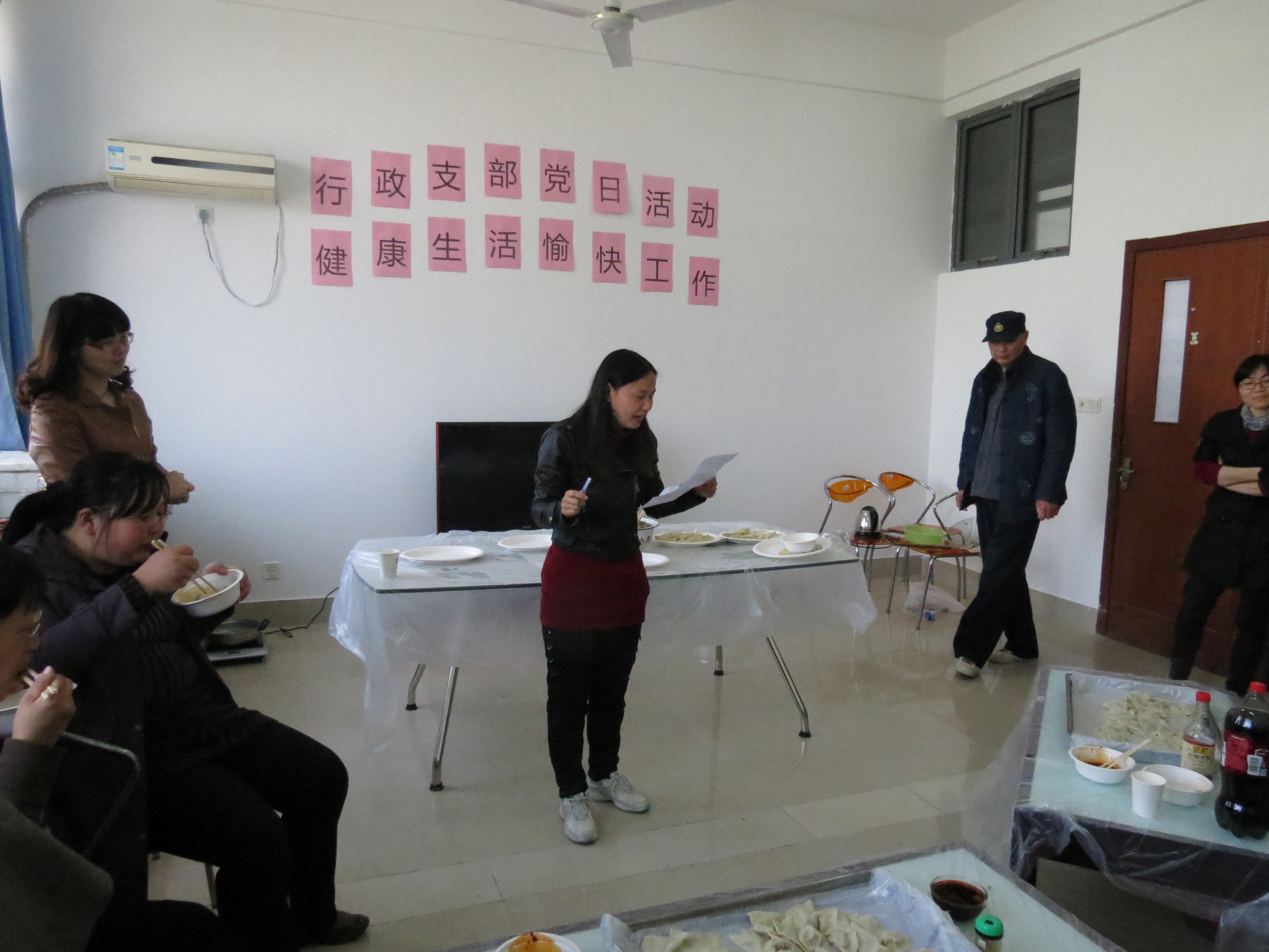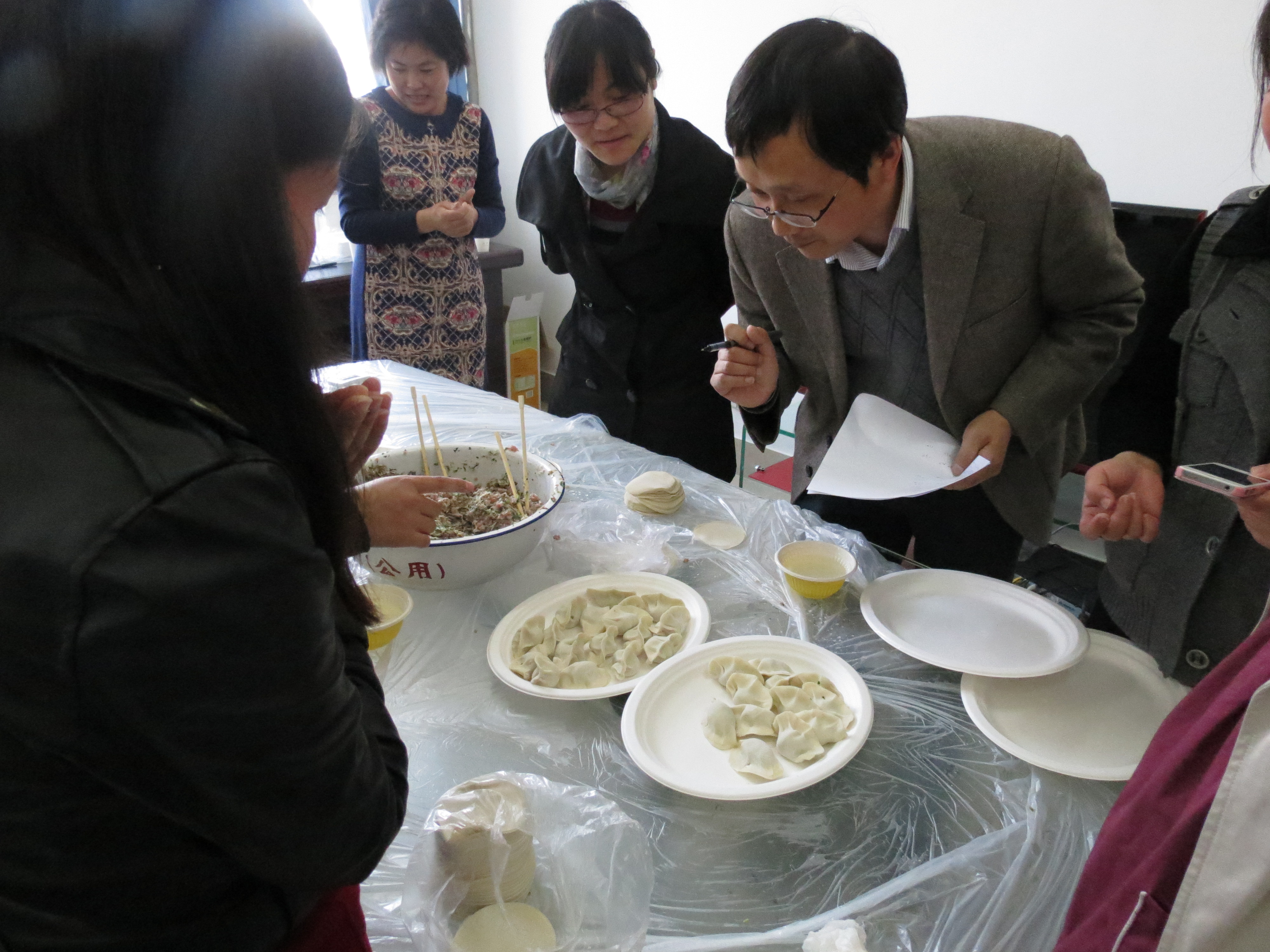 外國語學院黨委緊緊圍繞上級黨委部署和要求,多措并舉,扎實推進黨的群眾路線教育實踐活動深入開展。為了進一步加強黨員干部同人民群眾的血肉聯系,同時倡導健康生活理念,關注食品安全,培養良好的生活方式,提升教職工的身體素質,弘揚體育精神,外國語學院教工行政黨支部于4月4日中午開展了主題為“健康生活,愉快工作”的系列黨日活動,支部全體黨員均參加了本次活動,學院黨委委員龔曉斌老師、張曉虹老師、施惠平老師也應邀參加?;顒蝇F場氣氛十分熱烈,不時傳來陣陣歡笑和掌聲,許多非黨員教職工也前來現場觀摩,并參與活動。本次活動分為兩場,第一場為包餃子及吃餃子大賽,第二場為乒乓、羽毛球友誼賽。