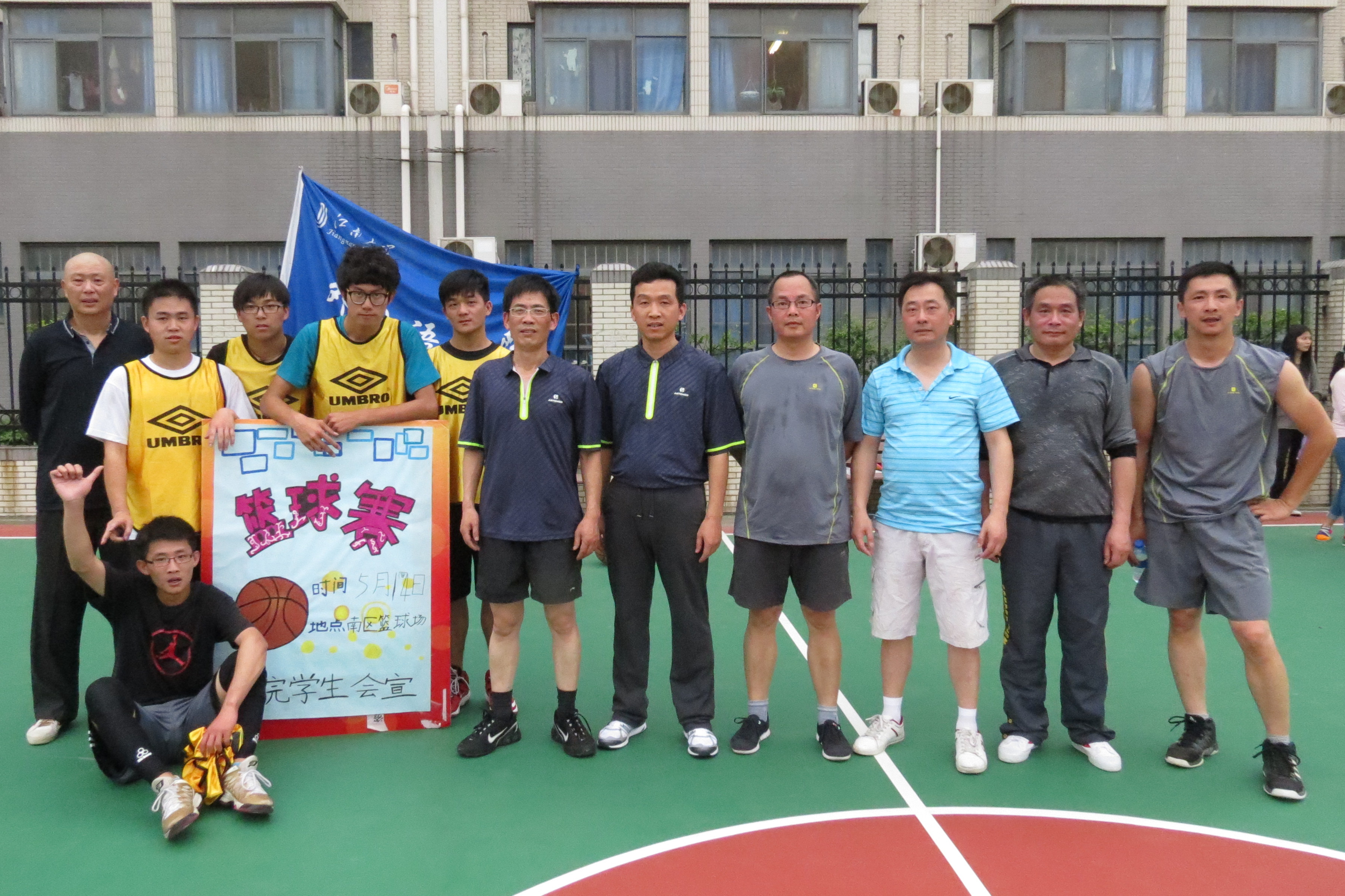 40多分鐘的賽場競技,老師們團結拼搏、英勇善戰,但仍因體力上的懸殊,最終以41比54的分值差距輸給了學生隊。臨近比賽結束雙方隊員進行了友好的合影留念。