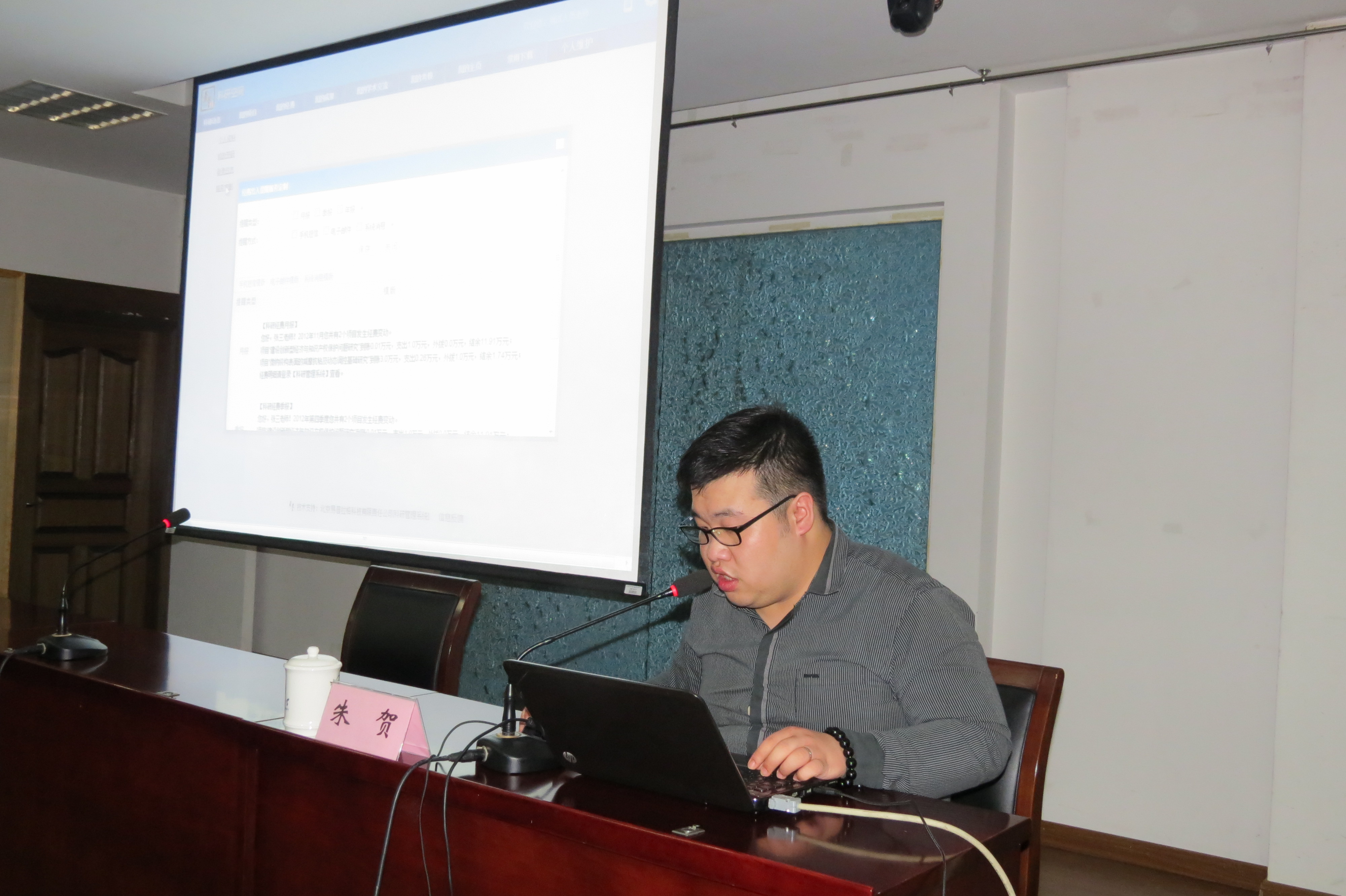 2014年9月26日(周四)下午14:50由js3333線路檢測中心社科處組織的js3333線路檢測中心人文社會科學研究管理系統培訓會在文浩館205室報告廳如期舉行。培訓會由人文社科管理系統主要研發人北京易普拉格科技有限責任公司朱賀經理主講演示。外國語學院全體教職參加了培訓會。