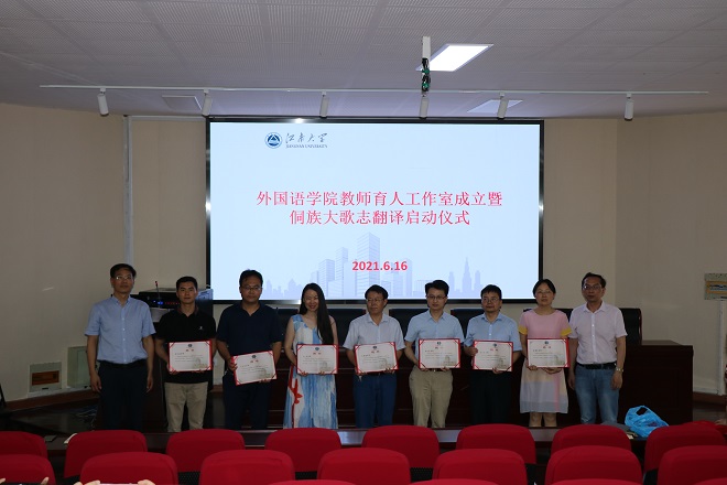 為貫徹落實中共中央、國務院《關于全面深化新時代教師隊伍建設改革的意見》和全國教育大會精神,進一步激勵廣大教師立德樹人的主動性和創造性,切實加強對青年師生的政治引領和思想引導,積極拓寬育人路徑,不斷豐富育人平臺,做好校級教師育人工作室培育工作,外國語學院創建了“譯見中情”院級教師育人工作室,并于6月16日下午在文科樓B103舉行了教師育人工作室成立儀式,同時為成員頒發了聘書。