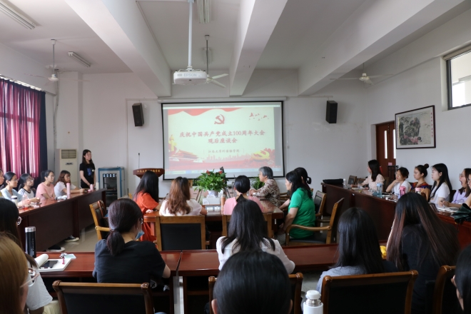 大會觀看結束后,大家情緒激昂,紛紛發表了自己的感想。鮑國慶老師說,看到祖國的繁榮昌盛,自己由衷的喜悅與自豪。中國共產黨從一開始只有50多名黨員的組織發展成如今擁有9500多萬名黨員的龐大隊伍始終沒有忘記自己的初心和使命,也印證了習近平總書記在講話中提到的“江山就是人民,人民就是江山”。她親眼見證了國家在共產黨的領導下從以前的物資貧乏到如今的全面小康,人民的生活越來越有滿足感。作為一名黨員,她會繼續聽黨話,跟黨走,為黨的建設和國家發展付出自己的一份努力。同時她也激勵在座的青年黨員接下第二個百年奮斗目標的接力棒,貢獻自己的力量。郭錫華老師也強調了青年共產黨員是未來發展的主力軍,必須發揮先鋒模范作用,牢記初心,承擔使命。吳艷敏老師總結了前兩位老師的發言,她說學生黨員們生在了最好的時代,應努力發揮青年人的力量,攻堅克難。最后,學生代表張如心、趙毅、戴圓方、余麗麗、鄒衛娟也談了談自己的感想,他們從神舟十二號的成功發射、《覺醒年代》、《理想照耀中國》等熱播獻禮劇中傳達的思想等談起,表明了自己以實現中華民族偉大復興為己任的決心和毅力。
