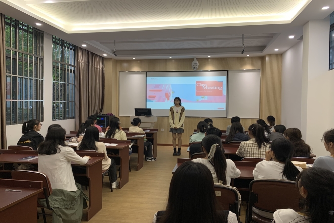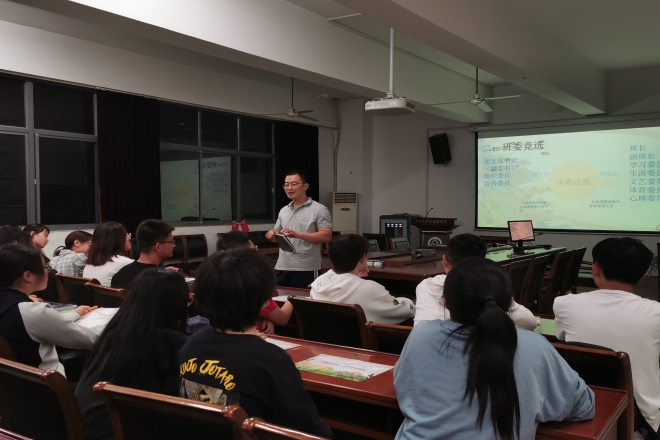 培訓會后,新生班主任們分別前往班級召開班會。班會主要圍繞網絡安全、心理健康、防疫和新生轉型教育四個方面進行,并在會上對近期重要事項,如貧困生認定和申請以及軍訓的相關事項作了明確要求、詳細解讀了學生手冊、開展了多形式的班委競選活動,組建了學生骨干隊伍,第一堂班會課的開展有利于班級事務更加高效地完成,為班級建設創造了良好條件。