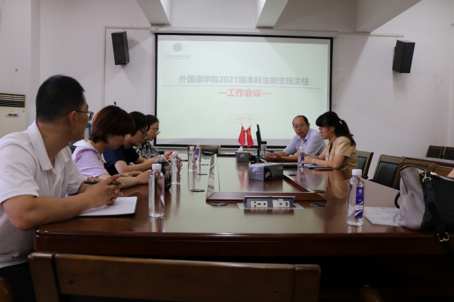 為塑造新生班級良好學風班風,明確規范班主任工作內容、工作職責,10月9日下午,外國語學院2021級本科生新生班主任培訓會于外院樓349會議室召開。外國語學院黨委副書記劉伯賢、2021級輔導員及全體新生班主任出席會議。本次會議由2021級輔導員、新生班主任顧海星老師主持。