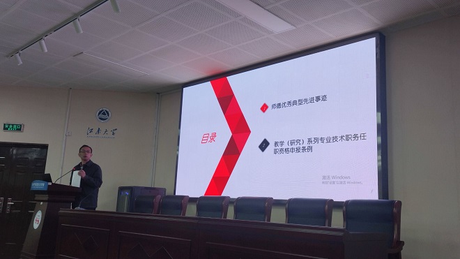 最后,為回應教師關切,方文開還詳細解讀了新發布的《js3333線路檢測中心教學(研究)系列專業技術職務任職資格申報條例》。