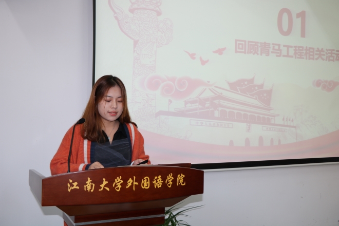 首先,團務中心吳欣怡同學回顧了青馬工程的系列活動。本次青馬工程從理論學習到社會實踐,從技能培訓到黨性錘煉,從“學,思,悟,用”四個維度幫助學員全方面發展,旨在培養堅定理想信念的青年馬克思主義者。然后宮瑩同學和董俁彤同學作為優秀學員代表發言。她們表示,在此次青馬工程培訓活動中感悟頗深,收獲良多。同時,她們也將時刻銘記把馬克思主義的指導思想運用到自己的學習生活中去,為爭做新時代優秀青年而不懈努力。