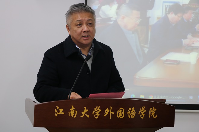 成立儀式后,江蘇省社科聯(lián)副主席徐之順、河北師范大學(xué)博士生導(dǎo)師李正栓教授、蘇州大學(xué)博士生導(dǎo)師王宏教授分別做學(xué)術(shù)講座并與參會(huì)師生交流。講座先后由外國(guó)語(yǔ)學(xué)院方文開(kāi)院長(zhǎng)與研究院陳偉院長(zhǎng)主持。