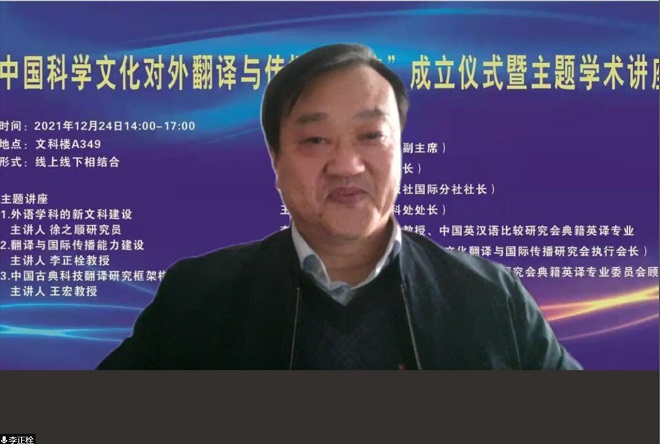 2021年12月24日下午js3333線路檢測(cè)中心“中國(guó)科學(xué)文化對(duì)外翻譯與傳播研究院”成立儀式暨主題講座在文科樓A349成功舉行。江蘇省社科聯(lián)領(lǐng)導(dǎo)、我校領(lǐng)導(dǎo)、國(guó)內(nèi)著名翻譯與出版專(zhuān)家以及外國(guó)語(yǔ)學(xué)院師生近200人一起在現(xiàn)場(chǎng)或線上見(jiàn)證了成立儀式并聆聽(tīng)了主題講座。儀式由外國(guó)語(yǔ)學(xué)院方文開(kāi)院長(zhǎng)主持。