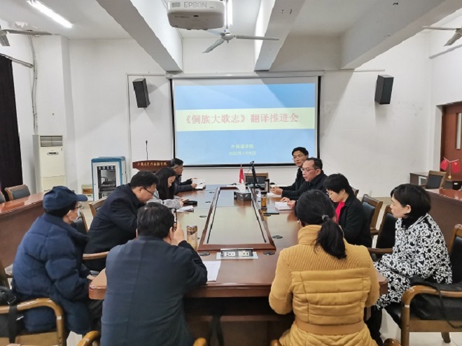 1月5日下午,我院“譯見中情”教師育人工作室全體成員在學院A349會議室舉行《侗族大歌志》翻譯推進會,翻譯項目主要成員悉數到會。會議由“譯見中情”教師育人工作室與《侗族大歌志》翻譯項目負責人朱義華副院長主持,史志洪書記與方文開院長出席并講話。