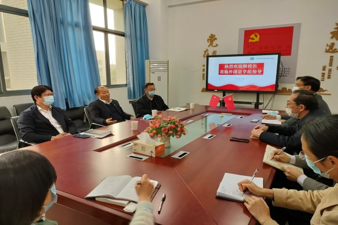 3月30日下午,校黨委常委、副校長顧正彪帶隊調研外國語學院,人力資源處處長王鴻博、社科處處長王建華共同參加調研。外國語學院黨政班子成員參加調研座談。