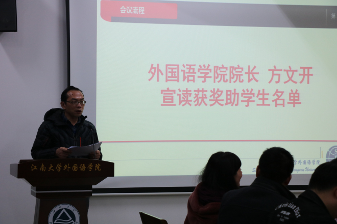 院長(zhǎng)方文開(kāi)宣讀獲獎(jiǎng)助學(xué)生名單