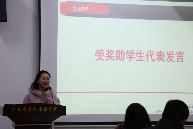 本次頒獎(jiǎng)儀式共頒發(fā)“愛(ài)菲斯獎(jiǎng)助學(xué)金”、“安達(dá)助學(xué)金”以及“社會(huì)愛(ài)心人士助學(xué)金”三項(xiàng)。首先學(xué)院黨委副書(shū)記劉伯賢進(jìn)行致辭。劉書(shū)記向在場(chǎng)的各位嘉賓表示熱烈的歡迎,向企業(yè)及愛(ài)心人士對(duì)外國(guó)語(yǔ)學(xué)院教育事業(yè)的關(guān)心和支持表示衷心的感謝。劉書(shū)記說(shuō):社會(huì)獎(jiǎng)助學(xué)金充分展現(xiàn)了企業(yè)的社會(huì)責(zé)任感,此次資助對(duì)受助學(xué)生來(lái)說(shuō)不僅是經(jīng)濟(jì)上幫助,更是精神上的激勵(lì)。江蘇艾菲斯醫(yī)院管理有限公司代表陸偉棟表示:艾菲斯醫(yī)院管理有限公司熱心公益,在外國(guó)語(yǔ)學(xué)院設(shè)立獎(jiǎng)助學(xué)金也是公司承擔(dān)社會(huì)責(zé)任的體現(xiàn),公司愿盡自己一份力幫助困難學(xué)生完成學(xué)業(yè)。安達(dá)汽車(chē)綜合性能檢測(cè)有限公司代表陳志剛說(shuō):“安達(dá)助學(xué)金”既是一種幫助,也是一種鼓勵(lì),希望受資助的外院學(xué)子努力學(xué)習(xí),將來(lái)也能盡己所能回饋社會(huì)。