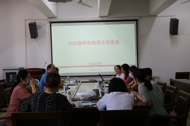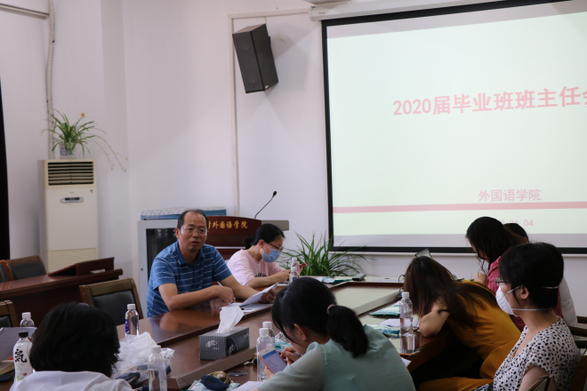 受疫情影響,2020屆學生的畢業就業工作面臨新的挑戰。為進一步推進外國語學院畢業生就業工作,6月4日下午,外國語學院在A349會議室召開2020屆畢業班班主任工作會議。學院黨委副書記劉伯賢、學工辦主任楊艷以及全體畢業班班主任老師參加會議。會議由楊艷老師主持。
