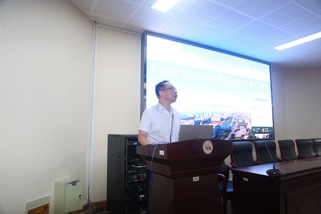 在校工會的指導(dǎo)和關(guān)心下,2020年6月3日,外國語學(xué)院召開第六屆教職工代表大會第二次會議,討論通過學(xué)院關(guān)于績效工資實施、2020-2022聘期崗位聘任條件等文件。41名代表出席了會議。