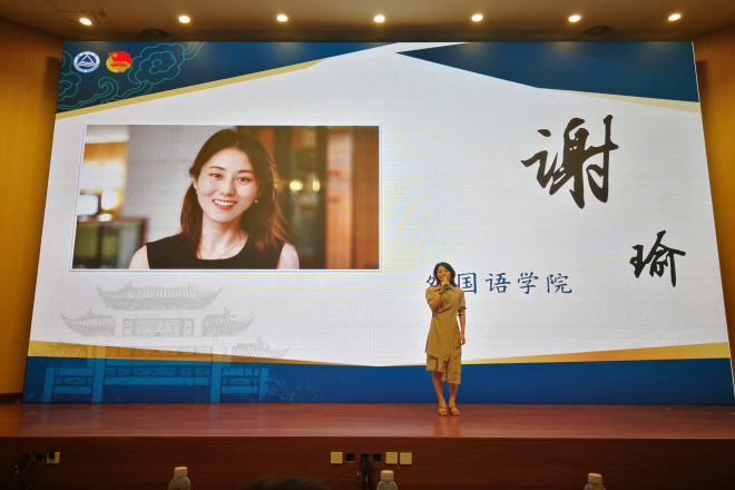 決賽現(xiàn)場(chǎng),謝瑜老師圍繞自己教書育人的教學(xué)經(jīng)歷,通過學(xué)生視角,從教學(xué)能力、教學(xué)成果和師德師風(fēng)等方面進(jìn)行展示。現(xiàn)場(chǎng)演講介紹中,謝瑜老師展現(xiàn)了外院教師“以生為本”的教育理念、認(rèn)真負(fù)責(zé)的工作態(tài)度以及扎實(shí)的專業(yè)素養(yǎng)與最終,經(jīng)過專業(yè)評(píng)審和大眾投票,外國(guó)語學(xué)院謝瑜老師榮獲第十六屆“我最喜愛的老師”榮譽(yù)稱號(hào)。