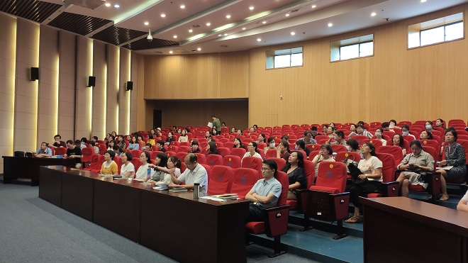 經過疫情期間保持了數月的線上的交流,老師們格外珍惜如今在遠東報告廳的聚于一堂。老師們早早地進入了會場,觀看大屏幕上播放著的2020年以來外國語學院師生在教學科研方面取得的成果。一個個醒目的姓名,一項項令人驕傲的成果,一篇篇出色的論文,一部部沉甸甸的著作,都代表著學院教職工的辛勤付出。