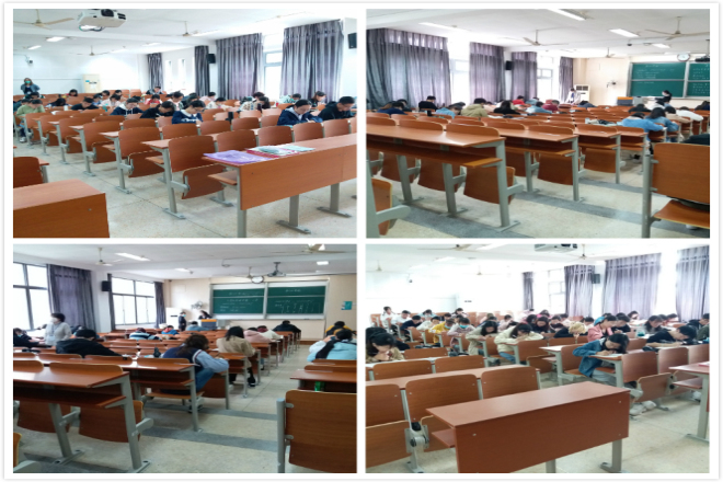 整場考試嚴格按照防疫預案,考生佩戴口罩進入教學樓前均進行體溫測量,考場內放置了免洗消毒液,預留了隔離教室。為了保障本次競賽順利開展,學院也多次召開競賽籌備工作會議。競賽當天,學生工作處、教務處領導在學院黨委書記史志洪、黨委副書記劉伯賢的陪同下巡視了各考場情況。外國語學院副院長顧琦一、副院長朱義華全程監控各考場動態,副院長謝競賢監控聽力效果。考務與監考老師分工明確、各司其職。由于提前做好了整個競賽考試的準備工作,從而使考場防疫、試場安排、監考培訓、試卷安保及運輸、聽力播放、考場監考、答卷回收、批改閱卷等各個環節得以規范有序進行。